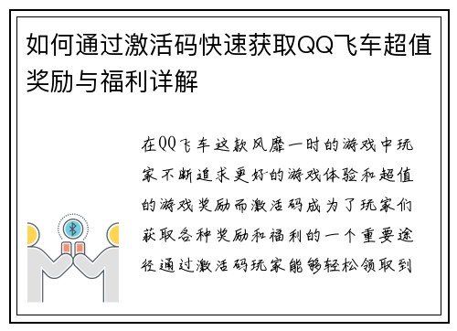 如何通过激活码快速获取QQ飞车超值奖励与福利详解